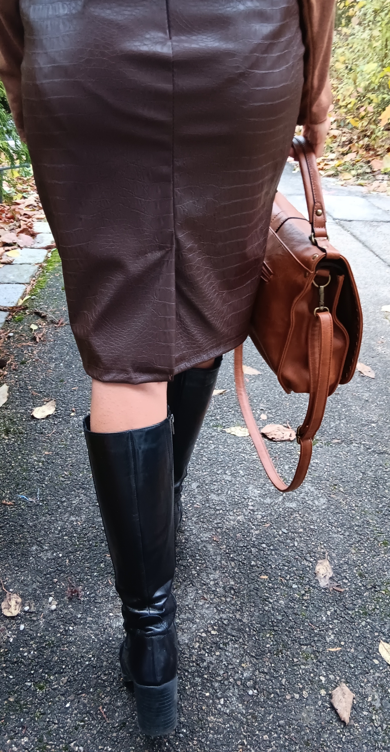 schmaler Rock, Krokoprägung, Stiefel