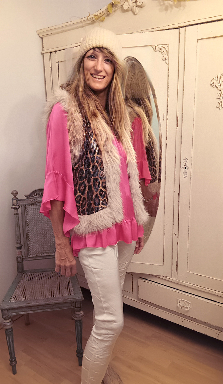 Weste Glitzer auf Satinbluse Pink